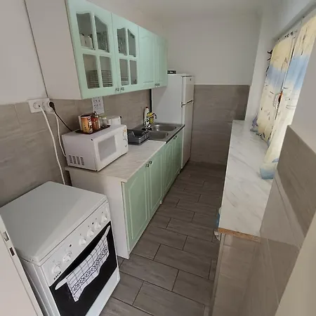 Eine Mikrowelle, eine Kaffee-/Teemaschine und ein Kühlschrank werden in einer kompletten Küche ebenfalls angeboten.